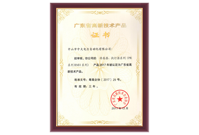 PR系列RMH系列高新技術(shù)產(chǎn)品證書