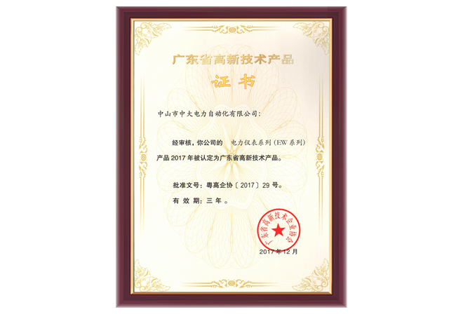 EW系列高新技術(shù)產(chǎn)品證書